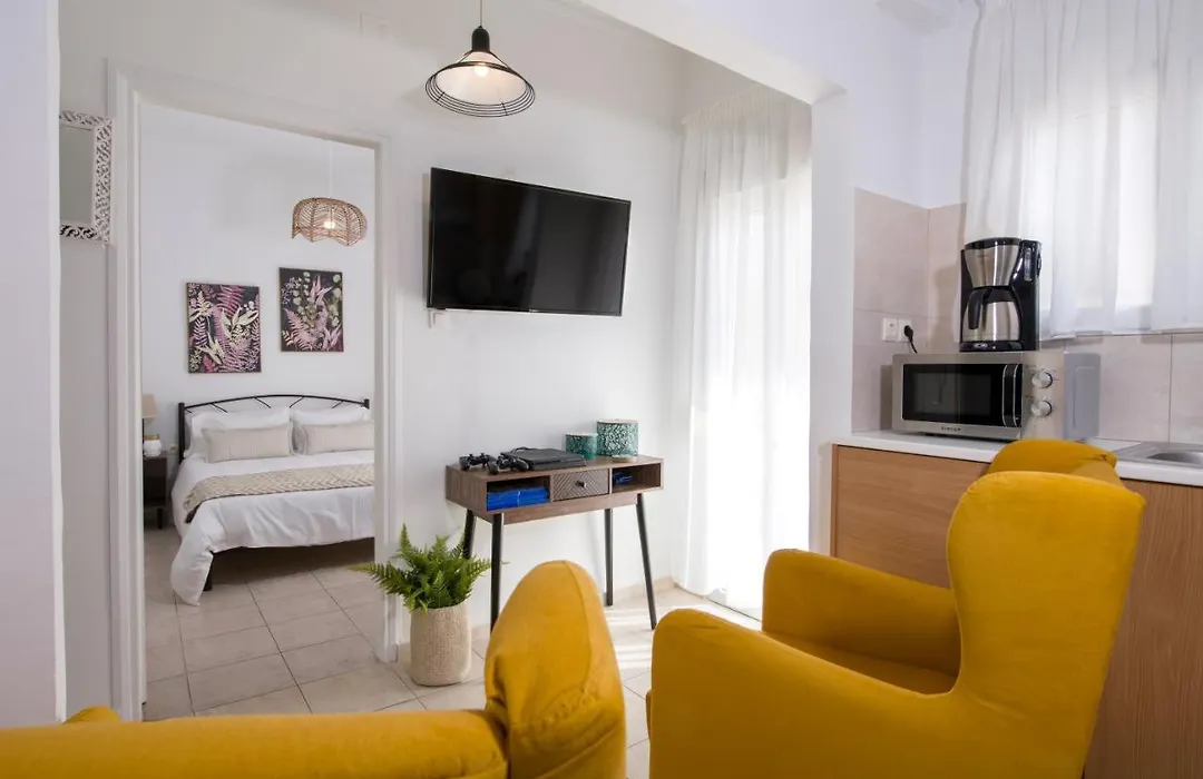 The apartment offers self-catering amenities, such as a fully equipped kitchen, and a dining place for guests' convenience. The restaurant Piatsa Tilihto Chania is located at a distance of 250 metres from the property. The nearest bus stop Iroon Politechniou is only a short drive from the 30 m^2 apartment. A push cart and baby safety gates allow for a more relaxed family stay.